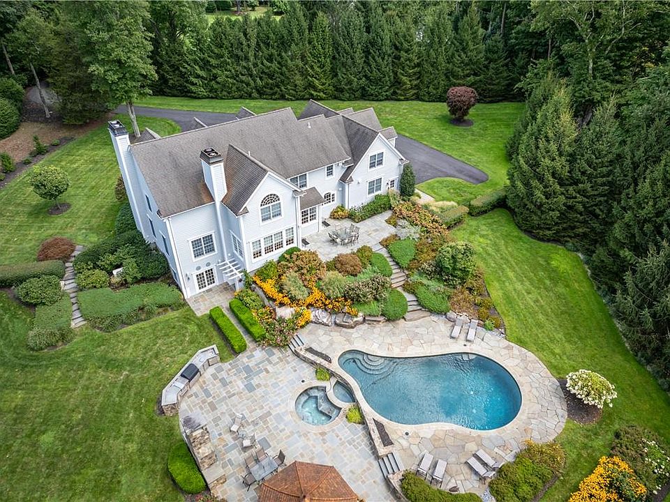 Discover your own private retreat nestled in breathtaking surroundings, complete with an exquisite in-ground pool, wine cellar and media room. This magnificent home offers 5 spacious bedrooms and 4.5 luxurious baths. This home stands as a testament to meticulous planning and attention to detail, ensuring every aspect of your living experience is perfectly curated. Step into a chef's dream with this stunning eat-in kitchen, equipped with top-of-the-line appliances. French doors open to a stone patio, perfect for al fresco dining. The kitchen effortlessly opens into the inviting family room, where a wood-burning fireplace brings warmth and ambiance. A formal dining room and living room also featuring a wood burning fireplace, as well as a large laundry room that leads to the 3 car garage complete this level. Experience unparalleled luxury in the master bedroom, featuring a gas fireplace, two spacious walk-in closets and an en-suite bath complete with a shower and jacuzzi. Four additional bedrooms and 2 full baths are thoughtfully designed for comfort and convenience. The finished basement is designed to be more than just an extension of your home. This space is crafted to be an experience in itself. From an expansive layout perfect for entertaining to sophisticated finishes. A state-of-the-art media room designed to comfortably accommodate up to 8 guests. The experience is elevated by elegant cove lighting perfect for movie nights, game days, or binge-watching your favorite series. Immerse yourself in luxury and bring the cinematic experience home. Indulge in the exceptional temperature controlled wine cellar designed for connoisseurs who demand the best. Enhance your poolside experience with a changing room featuring a soothing steam shower, offering a spa-like retreat after your swim. A convenient washer and dryer keep towels fresh. Every detail has been meticulously crafted for your comfort and convenience. Immerse yourself in the ultimate outdoor retreat showcasing a stunning in-ground heated pool and hot tub, bucolic grounds and outdoor shower. Enjoy a seamless blend of luxury with an outdoor kitchen, perfect for al fresco dining, and a charming gazebo ideal for relaxation. As the sun sets, gather around the elegant fireplace for cozy evenings and unforgettable memories. This secluded sanctuary is more than a home—it's a lifestyle. Welcome to your dream oasis. Additional Information: Amenities:Steam Shower,Storage,HeatingFuel:Oil Above Ground,ParkingFeatures:3 Car Attached,