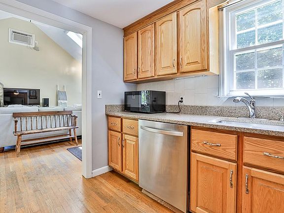 Need more space for working at home/at home learning? Center Entrance Colonial w/ 1st floor living AND family room AND 2 finished rooms in basement! Hardwood throughout main living area! Enter front door to lovely foyer, go to the left to find dining room open to nicely updated kitchen w/ breakfast bar that opens up to large family room w/ vaulted ceiling & flooded with natural light. Tucked away next to kitchen is a 1/2 bath & large pantry closet. Rounding out first floor is a great front to back fireplaced living room. Head to basement to find good raw space for a workshop as well as two separate finished rooms - perfect for home office/extra living space. Head up to the second floor & find 3 good size bedrooms & a full bath. The yard has a nice size composite deck, a shed, a fantastic wooded buffer as well as a path directly to Sullivan Park which features a playground, BMX bike park & sports fields. Less than a mile to route 136 bus stop on Vernon St & highway access.