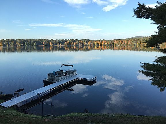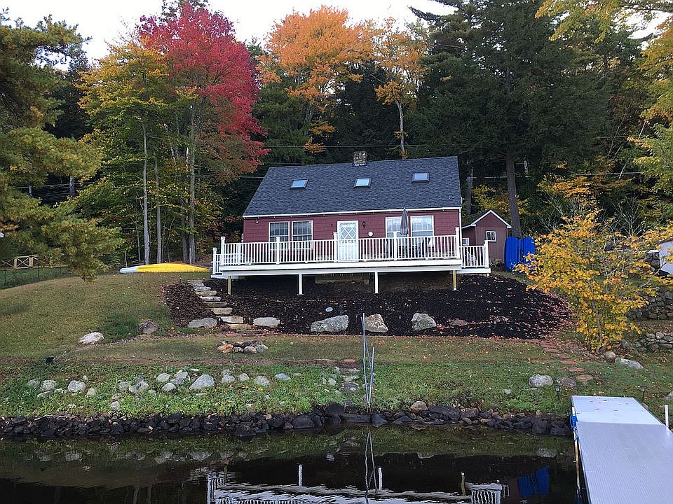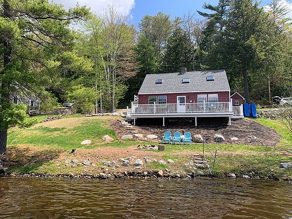 LAKEFRONT LIVING! Enjoy all this lakefront retreat has to offer w/ gorgeous views and amazing sunsets on Northeast Pond (aka Milton 3 Ponds). Open concept KIT/LR that goes out to a large Deck which overlooks a sprawling lawn and 80' of waterfront. 4 BRs (2nd floor BRs w/ skylights), 2nd floor Sitting room w/ skylight. Exposed beams throughout, and a beautiful stone wood burning fireplace adds warmth and character to an already charming property. New retaining wall for parking, new dock, new deck, and new septic system, plumbing, and electrical installed in 2018.