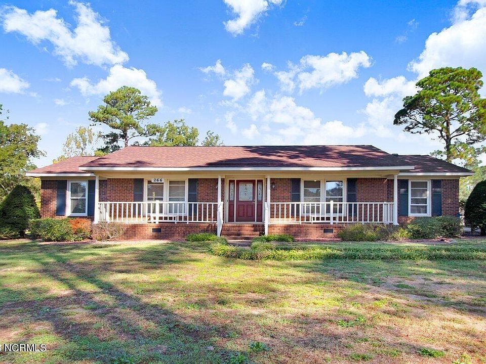 WELCOME HOME! This large brick ranch has been immaculately maintained and is MOVE-IN READY! Featuring 3 Bedrooms, 2 Bathrooms~ 1940 sq ft on .84 acre lot! You'll never want to leave the cozy den with stunning brick mantle and wood-burning fireplace. Kitchen has plenty of cabinets and smooth-top range, microwave, refrigerator, and dishwasher. Enjoy easy-care LVP flooring throughout the main living areas and newer carpet in the bedrooms. All 3 bedrooms are very spacious and can accommodate large furniture. Guest bathroom has tile floor and dual vanity. Updated master bathroom with shower. Plenty of options for entertaining with the huge front porch and enclosed back porch! 2-car attached carport on back part of home provides privacy and is so convenient for coming in and out. Detached garage/wired workshop is a DREAM for projects and additional storage. The fully functioning WELL is great for landscaping and washing vehicles. Located just off Hwy 111 S - Quick access to Hwy 70/SJAFB.