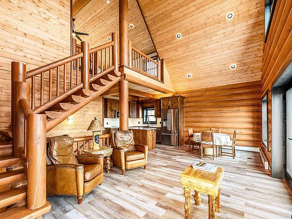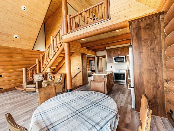 From Sunup to Sundown enjoy the spectacular views from this newly built Hiawatha Log home. The view is of the Rams Horn, the Absaroka mountains and surrounding valleys. You will experience the many beautiful changing seasons of Wyoming up close while sitting on the patio or deck on warm days, and from large windows and patio doors in the living and family rooms.This home is built with a walkout lower level and tuck under garage. The lower level has a family lounging area with a wet bar, guest powder room, laundry area with stackable washer/dryer, and patio doors leading to a wrap around covered concrete patio. A wonderful place to greet and visit with guests. The main level has a large vaulted living room open to the kitchen. The kitchen features Jenn Air appliances, pantry space and undercounter lighting for starters. The living room has sliding doors leading to a wrap around 8' deck with deck flooring and a cable railing. There are two guest bedrooms and a full bathroom completing the main level. On the upper level you will find the main bedroom looking over the main level, a bathroom and closet area. Waking up to the view form the main bedroom will truly take your breath away. This home has Knotty Alder solid core doors and cabinetry throughout, closet systems in each bedroom closet, ceiling fans, hot water radian heating system, snap lock wooden flooring, internet hookup, Weather Shield and Marvin windows, 220 amp service and a 5,000 gal. cistern. This never been lived in-home is located on Union Pass Road, just 20 minutes from Dubois, less than 90 minutes from Yellowstone and Teton National Parks, and the Jackson Hole airport. For outdoor enthusiasts, the bonus is being 10 minutes from the gateway to 1.2M acres of state and national lands to hike, fish, hunt, snowshoe, cross country ski and ride ATVs and snowmobiles. Interior pictures are virtually staged.