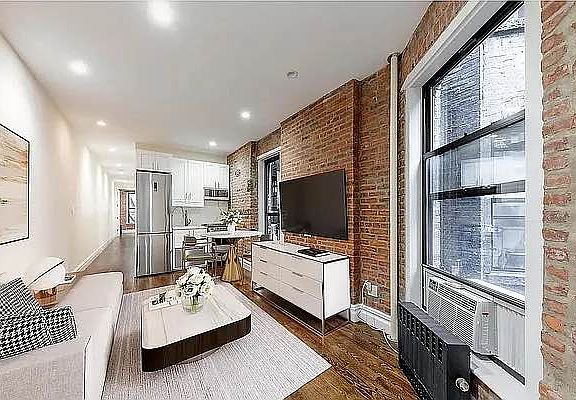 Welcome home to a beautifully reimagined residence that blends modern finishes with classic New York charm. This bright and airy apartment showcases soaring ceilings, exposed brick accents, and a thoughtfully designed layout that maximizes both comfort and style. The chef's kitchen is outfitted with a sleek stainless-steel appliance package, granite countertops, and a DISHWASHER, while the expansive living area offers the perfect backdrop for entertaining or relaxing. LAUNDRY IN THE BUILDING!