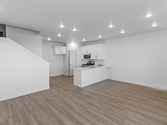 New townhome in the beautiful North Point Townhome subdivision by Visionary Homes. This townhome features a spacious and open floor plan with 3 bedrooms, 2 full baths and 1 half bath. 9 foot ceilings, an open concept kitchen, dining, and living room, and abundant natural light. Also enjoy disc lights in the great room and beautiful chip-resistant quartz countertops throughout the kitchen and bathrooms. The garage is full size for 2 vehicles. A spacious master bedroom is featured upstairs with a large master bathroom and walk in closet. A convenient laundry room is also located upstairs with all the bedrooms. Home is wired for fiber internet.