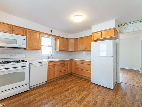 Lovely, well maintained Colonial/Cape with sunny, spacious floor plan throughout. First floor features newly refinished hardwood floors in living and dining rooms, kitchen, powder room, laundry and a large primary suite overlooking lush backyard. Second floor has two good sized bedrooms with hardwood floors and full bath. Large, partially finished basement. Central air throughout except one 2nd floor bedroom with split duct heat pump for AC and heat. Rooms freshly painted. New refrigerator and microwave. Oversized two car garage and huge back yard perfect for entertaining and relaxing! Ideal location, convenient to Brookdale Park, GSP, RT. 3, shops, restaurants, Oak View blue ribbon elementary, and NYC transportation. No smoking on premises and no pets.