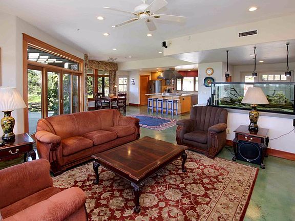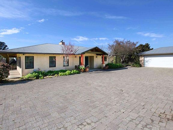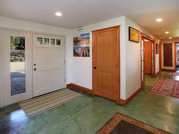 Single level ranch style home on 5 acres surrounded by pastoral beauty and views of rolling hills and woodland. Open floor plan with combo kitchen, dining, and living area, ideal for entertainment, clearstory windows and double slider door to the patio. Built green, this home boasts gleaming jade colored floors, radiant heat, passive solar w southwest exposure and a PV solar system. Kitchen has top end appliances, polished concrete counter tops, and stylish high quality maple cabinets. Enormous kitchen garden is complete with raised beds and a large green house. Lush and mature landscaping, fruit trees, and plenty of untouched land for your green thumb. Large automobile court and detached three car garage also provides plenty of parking for you and your guests. Other features include natural gas, cable internet and TV, 23 gpm well, solid 2x6 construction, metal roof. There is nothing quite like this desirable country home with a well thought out design and modern creature comfort.