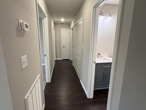 Be the first to call this beautiful new construction home! This charming 3-bedroom, 2-bathroom home is situated on a level lot with a wide two-car driveway, offering both convenience and curb appeal. Enjoy the open concept kitchen/great room layout, providing a spacious and inviting atmosphere for gatherings and everyday living. Hardwood flooring in the kitchen, great room, and hallway adds warmth and character, while durable low-maintenance LVP (Luxury Vinyl Plank) flooring in the bathrooms, & carpet in the bedrooms. The farmhouse double sink, paired with white cabinets, adds a touch of rustic charm to the kitchen, creating a stylish and functional space for meal preparation. Step outside off the eat-in kitchen, allowing for seamless indoor-outdoor living and entertaining. True primary bedroom with bathroom & walk-in closet. Don't miss out on this opportunity! Vinyl siding is the color Montana Suede with Wicker trim. More photos to come as more is completed. Property taxes have not been calculated as this is new construction.
