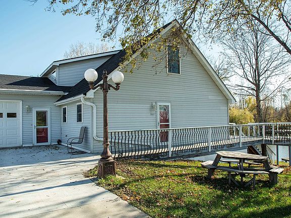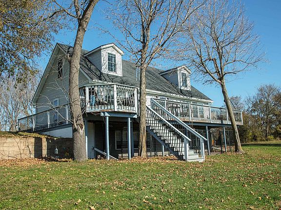 Looking for that peaceful spot where you can enjoy the outdoors but the convenience of being close to town? This 6+ acre gem is just that! You will love strolling around the pond, fishing or just sitting on the expansive deck watching the wildlife. The 1 1/2 story home features 3 levels of finished space Entering into the kitchen from the oversized 3 stall garage, you will find lots of cabinet space, solid surface counters, stainless appliances and bar seating. The laundry is conveniently located on the main level including half bath. The pond view from the living room is sure please with access to the deck. The primary suite also takes in the pond view and is on the main level. The open staircase leads you to the other two bedrooms and bath. The lower level features walk out, another room that can be used as a flex room (nonconforming bedroom, workout room, craft room or play room) and a family room area. Lots of storage plus a tuck under garage round out this amazing property!