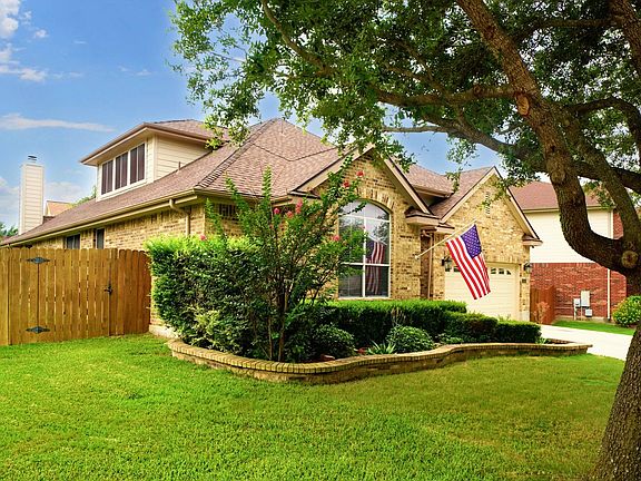 Discover this stunning corner lot home in the highly sought-after Belmont Parkway subdivision of Schertz, TX. As you step inside, you'll be welcomed by a spacious entryway that leads past two secondary bedrooms into the open-concept family room and dining area, complete with a cozy wood-burning fireplace. The kitchen seamlessly connects to the family room, making it ideal for entertaining. It boasts granite countertops, a tiled backsplash, matching black appliances, and a large island providing ample prep space. Enjoy meals or your morning coffee at the kitchen bar top, island, or the adjoining breakfast area. The primary bedroom, located on the main floor, features a luxurious en-suite bathroom with double vanities, a jetted garden tub, a separate shower, and a generous walk-in closet. Upstairs, you'll find an additional expansive game room, a bedroom, and a bathroom, offering plenty of space for your family's needs. The backyard is an outdoor oasis, featuring an extended covered patio with ceiling fans, mature trees, and a storage shed, perfect for weekend BBQs. The property offers convenient access to Interstate 35 and an array of HOA amenities, including a large community pool, playground, and jogging trails. The homeowner also covers yard maintenance and pest control, ensuring a hassle-free living experience. This home is a delight to show and will surely impress.