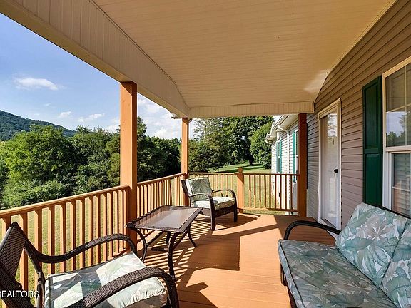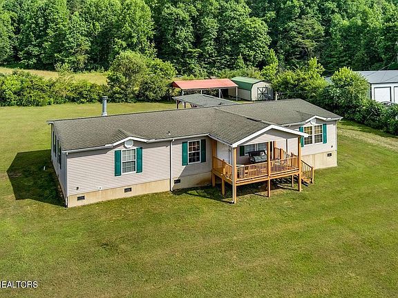 2007 Double Wide Manufactured home on permanent footer ( to be verified by buyer ) with 1584sqft living space. This charming home is nestled in a country setting on 0.91 acres with Mountain views just minutes away from downtown Oliver Spring or Downtown Clinton TN. Oak Ridge can also be reached in 15min via back roads! Featuring a large master suit with soaking tub, shower and double sink, large living room open to the kitchen and dining room, separate laundry room, a large den with dining area wet bar and fireplace is separated from the other living areas by a hallway, 2nd full bath and two additional bedrooms. Enjoy the tranquility of mountain views from the covered front porch, or relax in the hot tub on the covered back deck. Additional decking is built to surround an above ground pool just waiting for you to have it set up. This generous homestead also offers a large shed wired with electricity complete with stairs and a loft and a three car carport also wired with electricity. Country living and comfort found here! Schedule a tour today!