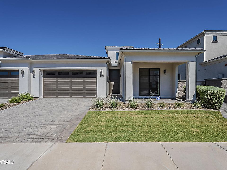 Welcome to resort-style living in the gated Villas at Somerset, located in a prime Gilbert location at Greenfield & Pecos! This stunning single-level home features 2 bedrooms plus a den, 2.5 bathrooms, and a 3-car garage. With soaring 10' and 12' ceilings, 8' doors, and high-end finishes throughout, this home blends elegance with comfort. The spacious primary suite includes direct backyard access, a walk-in closet with organizer, dual vanities, a stand-alone tub, and a beautifully tiled shower. The second bedroom offers its own private en suite, providing comfort and privacy for guests.