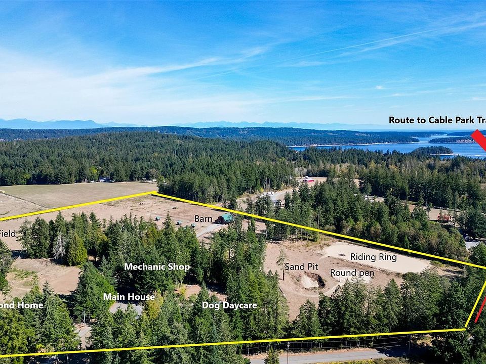 Just over 28 acres, minutes from Duke Point ferry. Active Hay Farm, with additional land lease available for more hay yield. Operating Business onsite, “Just Paws – Dog Daycare” is licensed & able to be transferred upon sale. 2 legal homes. 3 kitchens. Superb Barn with concession area should horse-camps be of interest. Riding Ring and Round Pen were constructed using the amazing sand pit onsite. This land is gently sloping with true southern exposure. Extremely well drained, dry year-round and a rare find being 100% useable. Fully fenced and cross-fenced. 2 wells (10 gpm & 30 gpm). Mechanics dream shop, adorable chicken house, & many outbuildings to discover. Beautiful lifestyle opportunity with farm tax status is in place. The studio suite in the main farmhouse was installed for a handicapped family member so is fully accessible from level, carport entry. Manifest your dream of a country lifestyle! So close to wonderful park trails, pubs/eateries within the thriving Village of Cedar.