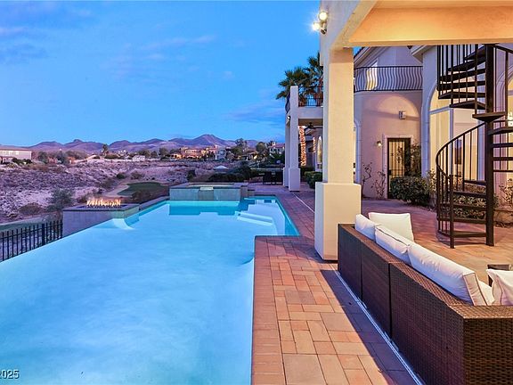 This stunning 6,918 sq ft custom home offers unparalleled luxury and breathtaking views, perched high above the Rio Secco golf course with panoramic views of the mountains, golf course and the Las Vegas Strip. Located within prestigious 24-hour guard-gated community of Terracina, the home has been meticulously maintained to combine elegance and modern convenience. Spacious, thoughtfully designed living spaces, with a primary suite located on the first floor for ultimate privacy and comfort. Upgraded kitchen with Viking appliances. The luxurious primary bath provides a spa-like retreat. Perfect for entertainment, the loft offers ample space for a theater setup, a game room, or both. A dedicated office space ensures you can work from home in quiet, professional environment. Creston system allows for seamless control of all home electronics with the touch of a button, providing convenience and efficiency. 4 car garage provides ample storage and room for multiple vehicles.