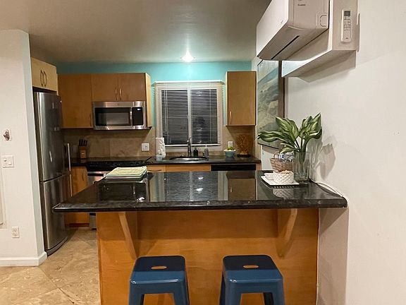 This studio is by video tour and is a new listing! Featuring a dedicated parking space. It's ONE house away from the white sands of south Mission Beach, this is no mere furnished condo experience! The boardwalk to the Pacific Ocean and bayshore is your backyard! Open the windows to this stylish and cozy condo and breathe the refreshing ocean breeze. Travertine flooring and granite/ travertine touches throughout. This deluxe furnished condo features a modern beach decor, dedicated parking space right outside, a full-sized kitchen equipped with all cooking/cutlery/utensil tools, private bath with shower/tub combo, Mini-split AC/heathing unit, convenient coin-laundry downstairs within building. long term lease 2-6 months is encouraged PLEASE NO BUSINESS / CORP / SHORT- TERM MANAGEMENT RENTAL INQUIRIES. SHORT TERM RENTALS ARE NOT LEGALLY ALLOWED UNLESS YOU HAVE A LICENSE FROM THE CITY OF SAN DIEGO. Fall pricing drops to $2600/month, Minimum 1 month lease. (Preferred 1 year lease) Owner pays for utilities (electricity, wifi, trash, cable,water). No smoking, no pets. For summer months, due to AC usage, tenant is responsible for paying electrical bill over $200 / month. Fully furnished studio ready to move in. Monthly surface cleaning included. No smoking allowed. No pets or service animals. PLEASE NO BUSINESS / CORP / SHORT- TERM MANAGEMENT RENTAL INQUIRIES. SHORT TERM RENTALS ARE NOT LEGALLY ALLOWED . No subleasing *Electricity bill is capped. If usage is over average limit then tenant pays overage amounts. Move out cleaning fee is min. $150