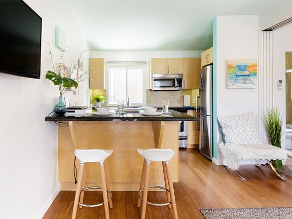 Just steps away from the Ocean and Bay. Fully furnished studio condo with luxury designer details is just what you need in a beachside home. Just bring your clothes and toothbrush. Located at Southern tip of Mission Beach and only a short walk to stores and dining. Designer kitchen, granite counter top and stainless steel appliances. Tile flooring. Laundry facility on-site. One-Assigned off-street parking space. Sorry no pets and non-smoking only. Security deposit of $1500 required. Applicant must have good rental history and good credit. Perfect for couple or solo business traveler looking for the ideal place to experience a couple months of the beach life. Showing by appointment only. Please contact Jeff for a showing and rental application. Fully furnished and equipped studio condo. 2 - month rental term available. TV/WiFi/utilities included. $35.00 application/credit check fee applies. No pets and Non-smoking unit. Term must end on June 30, 2020.