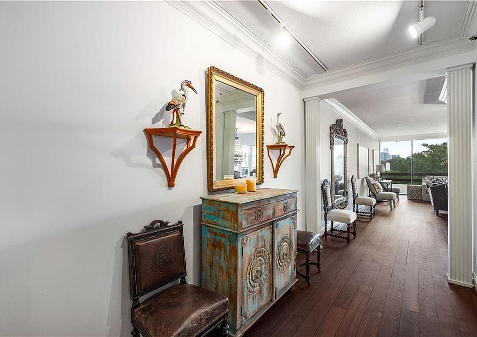 Experience luxury living in Buckhead’s premier high-rise. This building offers an array of services and amenities that enhance your lifestyle. Upon entering unit 10F, you’ll immediately feel the warmth and inviting atmosphere of this home. The foyer leads to a spacious great room with French doors leading into a cozy den, complete with built-in bookcases and a fireplace. The kitchen boasts great storage, generous counter space, new ovens, and Sub-zero fridge. The guest and primary suites are situated on the opposite end of the home, ensuring privacy from the main living areas. The primary suite is oversized, featuring a gracious walk-in closet and luxurious bath with double vanities, walk-in shower and soaking tub and the entire unit boasts gorgeous heart pine wood flooring. Each room in the home has access to a balcony, offering beautiful views of the trees, churches, and Buckhead. In addition, there is a storage unit that is located just outside your door and the HVAC was replaced in 2024. Park Place on Peachtree is revered as the first luxury high rise condominium in Atlanta and because of superior leadership and management has maintained its elite position in the Buckhead High Rise community. Park Place gives you more than just the key to a magnificent home, it opens the door to a magnificent lifestyle with many new upgrades including elevators, porte-cochere, landscaping, and freshly renovated common areas on residential floors. Amenities and features include a grand lobby with welcoming Lobby Ambassadors, valet parking, attentive staff including engineering, housekeeping, maintenance and management, electronically monitored access controls manned 24/7/365, gated secured parking garage, traffic light for easy ingress and egress, event room with full catering kitchen available for homeowner use, heated saltwater pool with newly expanded pool deck and shade features, new beautiful garden with event lawn, water and fire features and grill pavilion with dining area, fitness center with sauna, climate controlled wine cellar where each homeowner has an assigned bin, 2 guest suites available for owners to rent for their guests, convenient pet walk, community EV charging stations, emergency call system and water leak detection system in every home, many social activities, and assigned storage with every home.