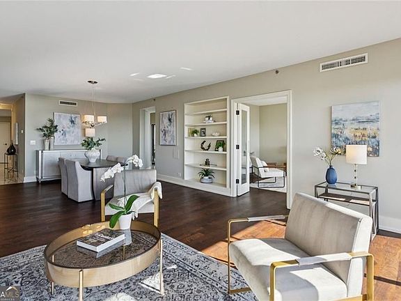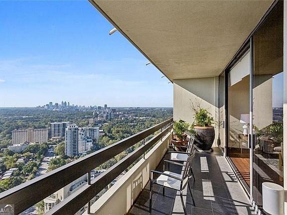 Nestled high above city on the 39th floor, this Park Place on Peachtree unit offers the best of the best with unobstructed panoramic views both north and south...the iconic city view south to Atlanta like the Phoenix rising as well the view north of Buckhead's ever changing skyline. Sleek finishes include gorgeous marble entry opening to the light filled Living Room and Dining Room with hardwood floors. Relax in the inviting den with built-in bookcases and spectacular views from the balcony. Enjoy the Buckhead view from the breakfast room with built-in cabinetry and wet bar. Updated kitchen features soft close cabinetry and high end appliances including SubZero refrigerator, Bosch dishwasher, Gaggenau stainless vent hood, and Miele cook top. The primary suite is spacious with plenty of room for sitting area and of course, more dramatic views of the city from the balcony. Primary bath is updated with double vanity and walk in dual shower. With two spacious balconies, you'll enjoy the exposure to the outside from sunrises over Stone Mountain to the meandering view of Peachtree Street to downtown Atlanta. Known as the gold standard for high rise living in Atlanta, Park Place has recently completed a major first class interior and interior renovation. From the stunning new porte cochere and lush landscaping to the beautiful South Gardens and the resort style pool area, it truly is a lifestyle that is unmatched. All the common areas are new with handsome lobby where the 24/7 Concierge and staff greet you and your guests at the reception desk. Valet parking is 7 days a week for both homeowners and guests. Management is on site and their dedication to the homeowners is unsurpassed. Work out 24/7 in the fitness center with state-of-the-art equipment and an area for your personal trainer. The spacious Club Room overlooks the pool and is perfect for meetings, social gatherings, or private functions. Read any good books lately? The Library is at your disposal. Guest suites complete with kitchenette may be reserved for homeowners' overnight guests. Entertain friends in the PPOP Wine Cellar with secure wine storage for homeowners. One of the new favorite places to relax is the South Garden where serenity abounds with outdoor seating, fire pit, water feature and two grills. You and your dog will love Bark Place dog park with artificial turf and 24/7 access. Park Place on Peachtree offers a lifestyle that suits everyone, from the many group activities available to both privacy and security. Simply the Best.