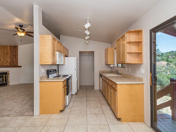 Adorable Prescott home with awesome views of Granite Mountain and beyond! Single level split floor plan with two master suites, large great room with wood burning fireplace, and lots of natural light throughout. Enjoy stunning views from the kitchen and dining room with direct access to the covered rear deck. Level back yard, circular driveway and a two car garage with a workshop. Great Prescott location close to everything in a charming neighborhood!