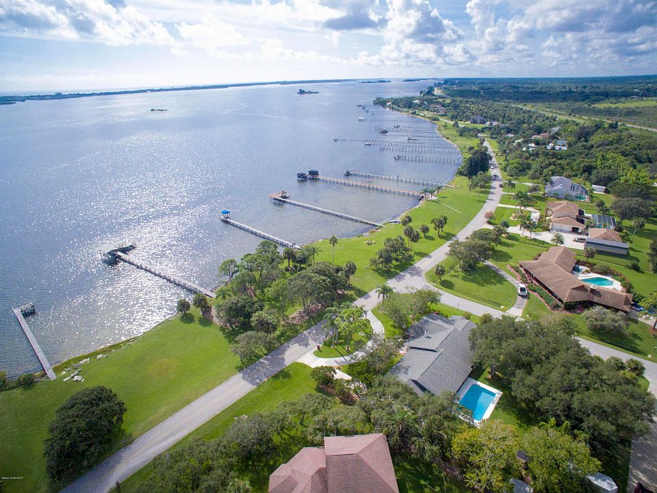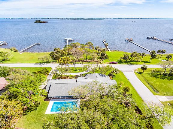 154ft. of pure Indian River front beauty! This IMPECCABLY kept estate has been completely renovated into a gracious waterside escape w/a covered boat dock, large pool, OODLES of storage & custom conveniences throughout. A broad bay window off the formal living/dining showcases the stunning river view, as a colonial style fireplace invites you to sit and stay awhile. The updated island kitchen is appointed w/Silestone counters, convection stove, maple wood cabinetry, sizable casual dining & 4 PANTRIES! Masterfully crafted oak walls w/built-in shelving & full wet bar create architectural flair in the easy-flow family rm., as doors open to a spacious air-conditioned & tiled FL room overlooking the recently resurfaced pool & bountiful backyard. The master is a true retreat w/lovely...