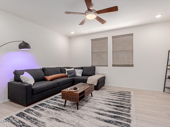 Don't miss this rare opportunity to own one of the best-located homes in the neighborhood! Perfectly positioned with lake views and just steps from the community pool, this home is offered FULLY FURNISHED and turn-key—just bring your suitcase! Features include a tandem two-car garage with extra parking nearby, elegant tile flooring, quartz countertops, stainless steel appliances, and rich espresso cabinets. The primary suite offers a spacious walk-in closet and sleek walk-in shower. Close to San Tan Village's premier shopping, dining, and entertainment. access to Loop 202 for effortless commuting.