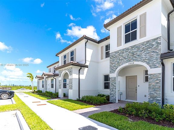 Brand-new two-story townhouse offers three spacious bedrooms, two full bathrooms, and one half-bath. The open layout features a family room/dining room, and kitchen, complemented by a separate living room for additional relaxation and entertainment space. All bedrooms are on the second floor. Kitchen boasts stainless steel appliances, quartz countertops, and ample cabinet space. Elegant ceramic tile flooring on the main level, the second floor is carpeted for added comfort. A large, fenced patio provides the perfect setting for relaxation or entertaining. Conveniently situated near schools, Turnpike Exit 2, retail shops, restaurants, a hospital, Amazon Distribution Center, and Homestead Air Base. Association approval requires 30 days, and tenants are responsible for water and electricity.