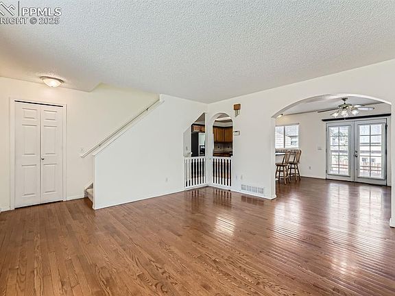 Incredibly convenient to Peterson Space Force Base, and all of the shopping/restaurants the Powers Corridor has to offer! Great 2-story with an open floor plan. Natural light and hardwood floors welcome you inside! Kitchen features stainless steel appliances and a breakfast bar. Dining room walks out to the large deck and backyard. Master Bedroom is huge with a walk-in closet and full private bathroom. 2 more bedrooms and additional full bathroom upstairs. Finished basement features an enormous wide open rec room and storage space in the mechanical room. New exterior paint!