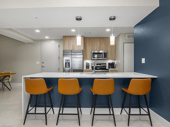 EMBRACE Bonita living by owning a slice of paradise in this ONE OF A KIND modern, spacious, 2-bedroom plus DEN, 2 bathroom Begonia II floor plan. The open-concept floor plan is ideal for entertaining, featuring a seamless flow from the kitchen to the living area and out to the private screened lanai. The versatile den, offers endless possibilities—a home office, a third bedroom, dining room or a cozy media room. Enjoy tranquil evenings on your screened lanai with partial pool views allowing for privacy, enjoying the best of both worlds. This condo includes two (2) UNDERGROUND PARKING SPOTS making this condo unique to most if not all who live in the Botanika Community. This thoughtfully designed condo offers a spacious lanai, STORM RESISTANT WINDOWS AND DOORS, quartz countertops, waterfall designed center island, stainless steel appliances, designer cabinetry, ENSUITE bathroom in the primary bedroom, in unit washer/dryer and OVERSIZED 9x8 climate controlled storage unit are just a few of the units premium features. Enjoy peace of mind knowing that this 3rd floor unit (top floor) is located in a "NO FLOOD ZONE". Community Elevator is conveniently located in the underground parking garage as well as ample outdoor guest parking spots for your guests. Owner's in Botanika have exclusive access to their community resort-style pool and spa and cabana. It addition to your community pool, owner's can enjoy the benefits of Bonita Fairway's awesome community amenities including tennis courts, pickle-ball courts, bocce ball, fitness center and resort-style pool and PUBLIC 18 hole golf course designed by Gordon Lewis without mandatory golfing fees is perfect for owner and guests of all ages. Botanika is ideally located deep within the Bonita Fairways community and offers peace and serenity nestled up to the natural preserve home to native turtle species and wildlife sightings. Perfectly situated for the ultimate Southwest Florida lifestyle, ideally located in close proximity to the pristine beaches of Bonita Springs and a short drive to the Naples Beaches, Coconut Point Mall, fine dining, and boutique shopping. Being offered TURNKEY this condo has it all and is move in ready.