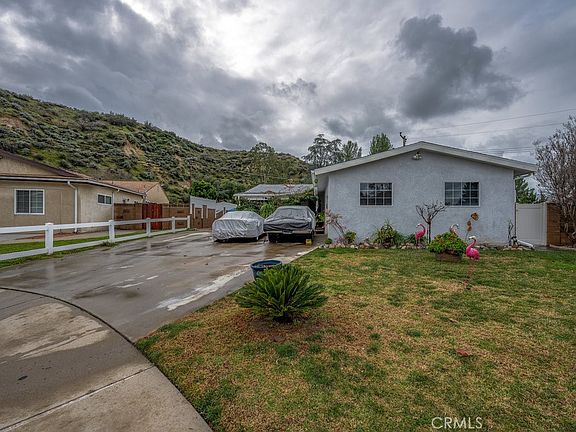Welcome to 26607 Balerna, in the heart of Santa Clarita. NO MELLO ROOS, NO HOA, RV PARKING!!! Beautiful single story home on a large usable lot located on a cul-de-sac. Walking distance Emblem Elementary and close by shopping and restaurants. Extra-large driveway with RV parking, and the cutest front porch welcomes you into this home. The home has an open floor-plan with large family room, dining area, and upgraded kitchen with granite counters and pull out shelves in pantry. There is a flex room which can be used as an office area, play room, hobby area or whatever you need. The Primary suite features its own bathroom with a walk in shower and private access to the large backyard. There are two additional guest bedrooms and guest bath. Home has a newer roof and flooring. The utility room off the flex space has a laundry room, and has a separate entrance to the back yard and access to 2 car garage that has lots of built in storage. The backyard is very spacious and wraps around the entire home. There is a very large concrete patio with a cover that has pull out shade for the sun. There is a large lawn with a oversized workshop or she-shed, with its own covered porch with electricity and lighting.. Rare find.