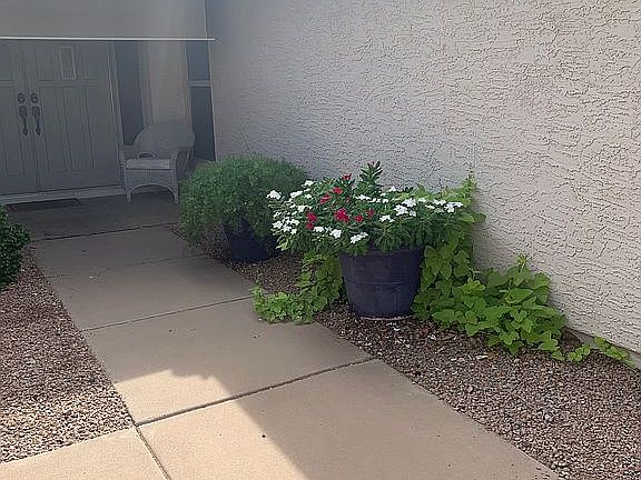 This beautiful house is located in the Cottonwood subdivision of Sun Lakes. The model is an extended Shawnee plan, with 2 bedrooms and 2 bathrooms. The master bath has a shower, the guest room bath has a tub and a shower. The home has been extremely well-cared for and maintained over the years. The current owners bought the home in 2003, and since then, they have updated the living room, kitchen and bathrooms. New flooring was also installed throughout the home. All the windows have been replaced with double paned windows, and the front awning was also replaced. Other highlights include: a large, extended master bedroom; a walk-in closet in the master bedroom; a beautifully landscaped back yard with citrus trees; and a skylight tube installed in the master bathroom, new air conditioner, new roof, new garage door and electric garage door opener, and a new water heater. The backyard has a large patio and lots of beautiful greenery, including: desert plantings, rose bushes, an orange gree, a lemon tree, and a Mexican lime tree, and even a saguaro cactus. There is an water-irrigation system for the plants and trees with an automated programmable timer. The car is a two-car garage, and there is also a separate storage room in the back of the garage, with lots of hooks and shelving, and access to the back patio. Call seller at 480-364-6164 or 480-620-5182.