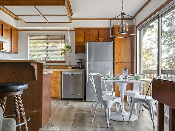 Adorable, well curated, successful current STR (short term rental) located close to Highway 18 in between Crestline and Lake Arrowhead. This home has been well cared for and has been tastefully decorated that provides current trends mixed with vintage. You'll walk in and be wowed by all the natural sunlight that pours in. On the main floor you will find 2 bedrooms, a full bath, the living room with brick fireplace, kitchen with open floor plan and sliders that lead to an attached deck. On the bottom floor you will find a family room with attached deck, 3rd bedroom, 3/4 bath and laundry room. Current owners have updated the main level floors with LVP vinyl and carpet throughout. The home comes "Turn Key" minus sellers personals. As a current successful rental, this can be an easy take over and can be your perfect mountain getaway/ rental as well. Don't pass up this opportunity. There is parking for 2 cars and is located on a county maintained road.