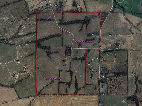 A rare find indeed! 245 acres , with 144 in Fayette County which are PDR protected and 101 in Bourbon County Kentucky. As you see by the photographs, this property has wonderful gently rolling topography and is a blank canvas on which to build and improve to your vision and dreams. The property includes a possibly historic brick residence most likely constructed in the early 1800's, which is in need of renovation, but could be a special amenity. There is also a 1800sqft residence on the Bourbon County land, along with a tobacco barn and other outbuildings (currently leased but of little value).