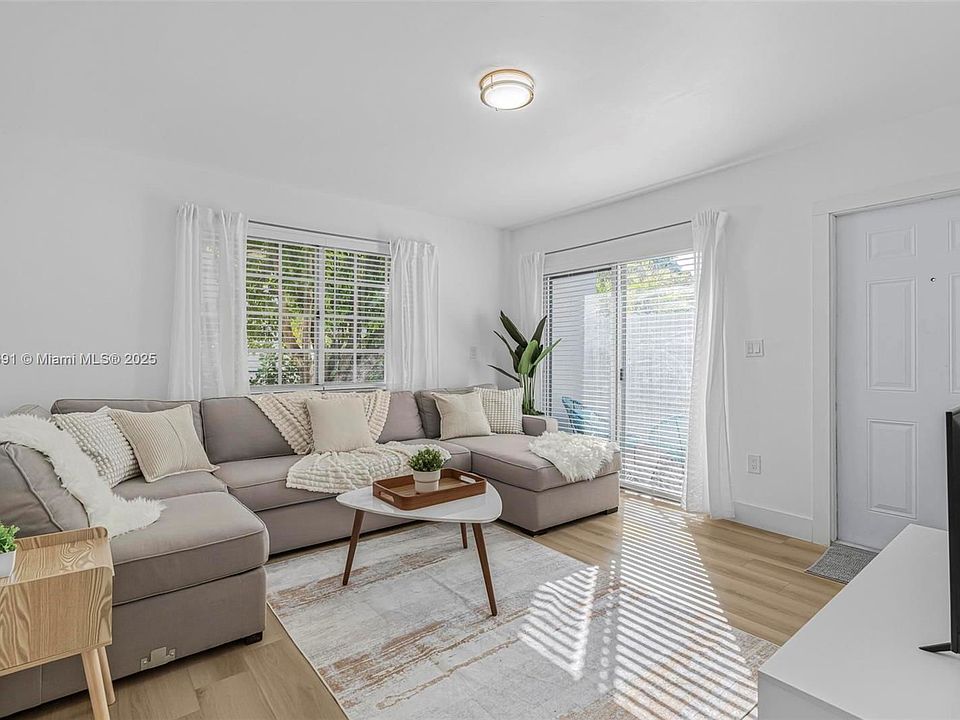 Beautifully redone Coconut Grove townhome in the Silver Bluff neighborhood on quiet street. This bright and open 3 BR/2BA is fully furnished and just renovated with a modern serene coastal design. New kitchen appliances, cabinets, quartz countertops and LG washer/dryer in unit. Kitchen fully stocked. New baths, roof and central AC. Primary bedroom has en suite bath and huge walk-in closet. 2 parking spaces and private balcony and backyard outdoor space with mango tree. Internet included. Amazing central location, just minutes to Coconut Grove CocoWalk, Coral Gables Miracle Mile, I95, and walk 3 blocks to the new CG Metro rail station. Close to UM and all hospitals.