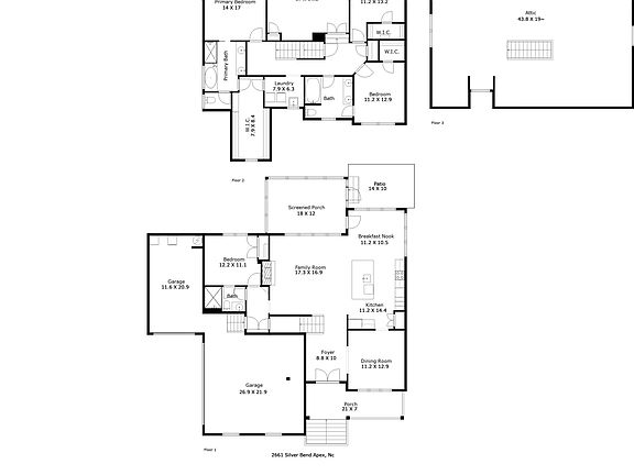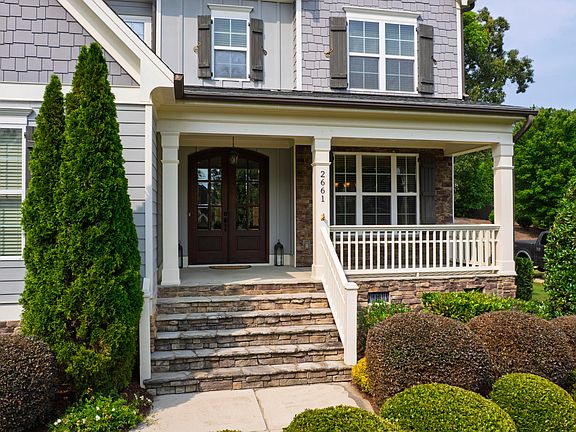 From the moment you arrive at 2661 Silver Bend Drive, you'll know you've found something special. The curb appeal is undeniable — picture-perfect stone steps lead to a wide, welcoming front porch made for sipping sweet tea or settling into a quiet evening with a good book. Double glass front doors open to reveal a home where thoughtful design meets timeless craftsmanship. And it's no surprise — this home was built by Future Homes by Jim Thompson, a respected custom builder known for quality construction and enduring style. In a neighborhood where most homes are production-built, this level of craftsmanship is a rare find. Inside, soaring ceilings and an abundance of natural light give the main living spaces an open, airy feel. The living room features elegant beadboard accents and flows seamlessly into a spacious kitchen, complete with stainless steel appliances, ample cabinet storage, and plenty of room to gather. Whether you're hosting game night or baking cookies on a Sunday afternoon, this is a space that brings people together. Need more room to spread out? The oversized bonus room is ready for whatever life throws your way — home office, movie nights, playroom, or your own personal yoga studio. The main floor also features a private guest suite with a full attached bathroom — perfect for in-laws, visiting friends, or anyone who appreciates main-level living. With brand new carpet underfoot and easy access to the rest of the home, it offers comfort and convenience without compromise. The primary suite upstairs is your personal sanctuary, with a jaw-dropping walk-in closet and a spa-like bath that includes a glass shower, soaking tub, and room to truly relax. Each additional bedroom is generously sized, with a floorplan that flows with purpose and ease. And speaking of potential — the full, unfinished walk-up attic is a dream waiting to be designed. Need a home gym, craft space, or extra bedroom? It's all possible here. Step outside and you'll find even more to love: a screened-in porch with a ceiling fan perfect for enjoying warm summer nights without the company of mosquitoes, and a fenced, landscaped backyard with room to play, garden, or entertain. But let's talk about the real MVP of this home — the ultra-rare 3-car garage. In this neighborhood, it's practically a unicorn. No other home currently on the market — and none sold in the neighborhood this year — can boast the same. Whether you need space for a workshop, extra storage, or just want to finally park all your cars inside, this garage delivers in spades. Add in a brand new water heater, custom details throughout, and a location that offers the best of both Fuquay-Varina and Holly Springs, and you've got a home that's as functional as it is beautiful — built to last, and ready for its next lucky owner.