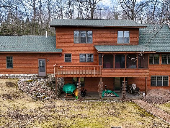 Charming 4BR, 3BA home located at the end of a quiet road on Echo Lake! Embrace the Northwoods at this 36-acre waterfront property, boasting approx. 1,439 feet of lake frontage. Echo Lake is a 204-acre full rec lake with great fishing. Step inside to discover a spacious living room with cathedral ceilings and a cozy wood-burning fireplace. An open-concept kitchen and dining area are perfect for gatherings & holidays. Enjoy evenings overlooking the water from the screen porch. The 2nd floor fts a loft and generously-sized primary bedroom with an ensuite. A finished walk-out basement offers two more BRs, ideal for accommodating guests or transforming into a recreational space. A large, level yard provides easy access to the waterfront. The 3-car attached garage offers space for your vehicles and fun toys! Easy access to ATV/snowmobile trails. Immerse yourself in the quiet atmosphere and relish in this one-of-a-kind property. Don't miss your chance to own this remarkable Echo Lake home!
