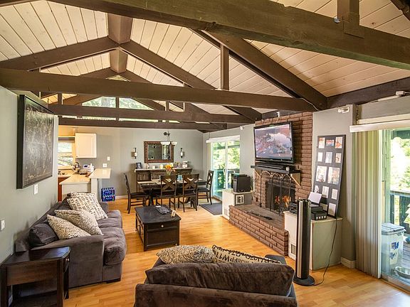 A Lovely Cabin in the Forest. Contemporary feel yet Nestled in the Trees. Living Room enjoys Open Beamed Ceilings with a nice flow to the Dining Area and Kitchen with Stainless Steel Appliances. 2 Spacious Bedrooms with access to a shared Deck. A Huge Lot with Fantastic Outdoor Areas including 3 Decks - One Deck is Quite Large and Wonderful for Entertaining or Just Relaxing. Large Fenced Backyard too! Private location but close to everything. Excellent commuter location.