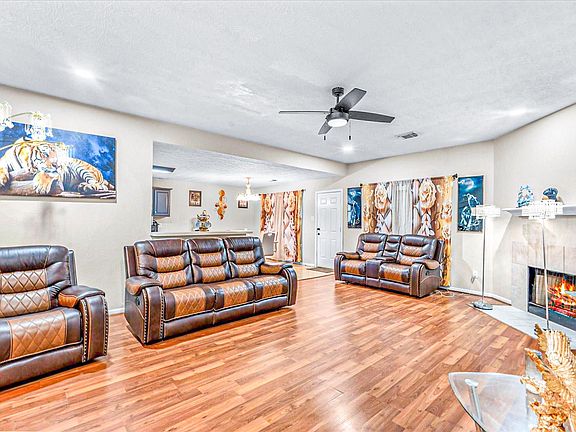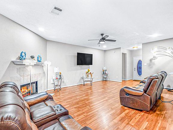 Stylish laminate wood flooring flows throughout the home—no carpet in sight—creating a seamless and clean aesthetic. A charming fireplace anchors the living space, adding warmth and character. Sitting on an expansive 6,599-square-foot lot, the home boasts a generous backyard, perfect for relaxing evenings, weekend BBQs, or room to play and grow.