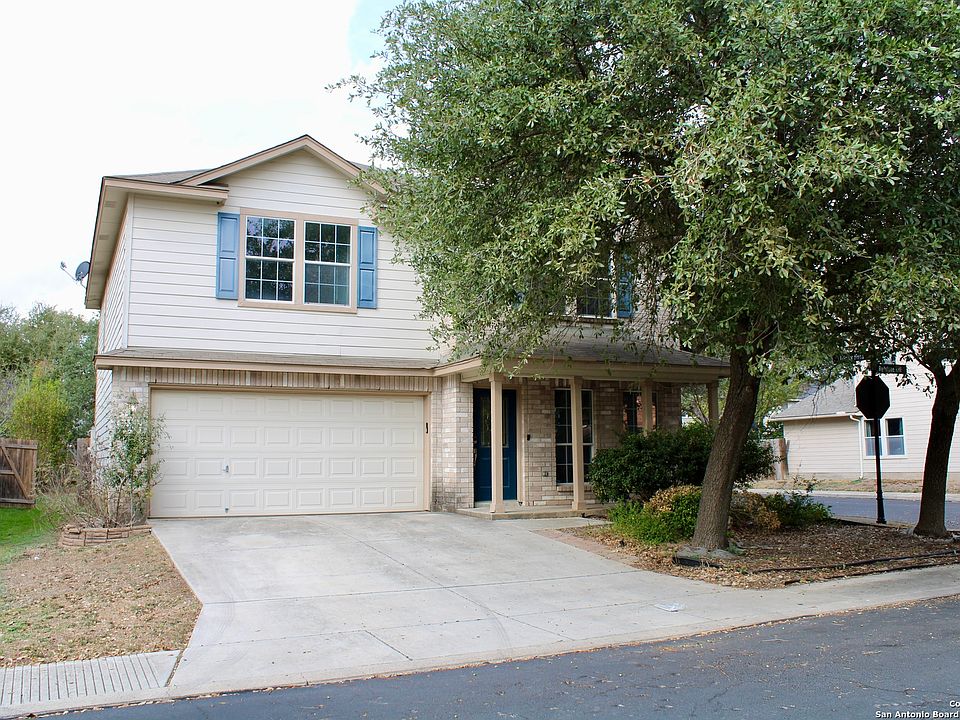 Beautiful 2-story home on a spacious corner lot in the desirable Trinity Oaks community. This 4-bedroom layout offers an open and functional design with abundant natural light throughout. The main level features a welcoming living area that flows into a spacious dining and open kitchen with ample cabinetry and a breakfast nook overlooking the back yard. All bedrooms are upstairs, including a generous primary, Three additional secondary bedrooms provide great flexibility for guests, a home office, or hobby spaces. The corner lot provides extra yard space, mature landscaping, and added privacy. Enjoy outdoor living and take advantage of the convenient access to nearby schools, shopping, 281/1604 . A great opportunity to own a well-kept home in one of San Antonio's sought-after neighborhoods.