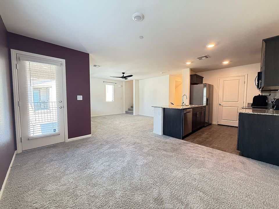 Good news. First month rent will be $1,500 only . Please come see this beautiful, modern 3 bedroom/ 3 bath townhome is located in resort-style community that includes a gated entry, community pool, splash pad, playgrounds, walking trails and basketball courts. The townhome boasts an inviting courtyard and a balcony, perfect for enjoying outdoor relaxation and entertaining guests, open floor plan features spacious great room, kitchen with center island, granite countertops and stainless steel appliances, 1 bedroom on the first floor and 2 bedrooms on the 3rd floor, and each bedroom has it's own bathroom, ceiling fans throughout for comfortable living. Convenient location close to freeways, schools, shopping including Costco, and more. Consider small pet. WiFi and Cable are included. The community pays for it via the HOA. Free to the tenant.