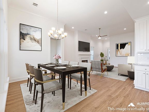 Estimated completion: Complete and ready to move in Alvarez Construction is bringing luxury living to Livingston Parish with 71 homesites offering 29 style options. All homes will range from 3-5 bedrooms, 2-3 bathrooms and will start at 1,555 sq ft. Juban Gardens also boasts two ponds and a green space, adding to the unique character of the community. Located off I-12 and near Juban Crossing Shopping Center, you are never far from all the shopping, dining, and entertainment you could ever need. As you enter your new home, its luxury finishes await. Through the main living areas you'll find vinyl-plank floors, while the bathrooms and utility room feature tile flooring. The living areas and Owner's suite feature crown molding, and the kitchen boasts custom cabinetry, an oversized island, a gas cooktop, and 3cm granite countertops. The Cottonwood plan is a 4bed/2bath, single story home offering open and spacious living areas with 12' high ceilings. Adjacent living and dining area with windows overlooking backyard. LVT floors and oversized ceramic throughout with carpet in the bedrooms. Gourmet kitchen features keeping area, chef's island, GE stainless steel smart appliances, gas cooktop, separate wall oven and walk-in pantry. Private Master bedroom has en-suite bathroom with dual vanities, walk-in shower, garden tub, WC, and walk-in closet. 3cm granite counters in kitchen and all baths. Home has a full size utility room and private entrance from garage. Upgrades Included: Back Patio Extension,lv2 lvp in in primary bedroom , primary closet, bedrooms2,3&4,lv2 tile in bathrooms and utility,lv3 subway tile,cabinets to ceiling,lv2 tiled shower, closet shelving