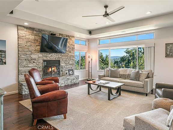 Nestled atop a serene ridge with breathtaking mountain vistas, this exquisite home sits in the esteemed Oakridge Estates community. Experience unparalleled tranquility with no direct neighbors across, and benefit from a minimal annual HOA fee and no allowances for short-term rentals. Just a brief 10-minute drive leads you to the vibrant heart of Lake Arrowhead, showcasing an array of restaurants, shops, and the picturesque lake itself. Enjoy the privilege of lake rights that come with this residence.
