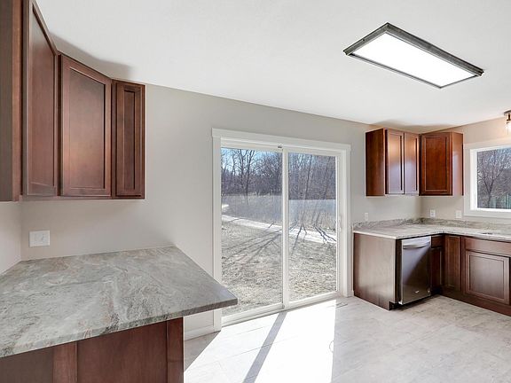 This tastefully updated 3-bedroom, 3-bathroom raised one-story residence is nestled on a generous .65 acre lot, offering a perfect blend of modern comfort and serene living. The home features a recently updated kitchen and bathrooms, complemented by new flooring and fresh paint throughout. With all-new siding and a brand-new roof on the detached three-car garage, this property is move-in ready. Located in the highly sought-after Lakeville school district. The oversized driveway offers ample parking space, ideal for gatherings or accommodating multiple vehicles. The expansive wooded backyard presents endless opportunities for outdoor activities, gardening, or simply enjoying nature's tranquility.