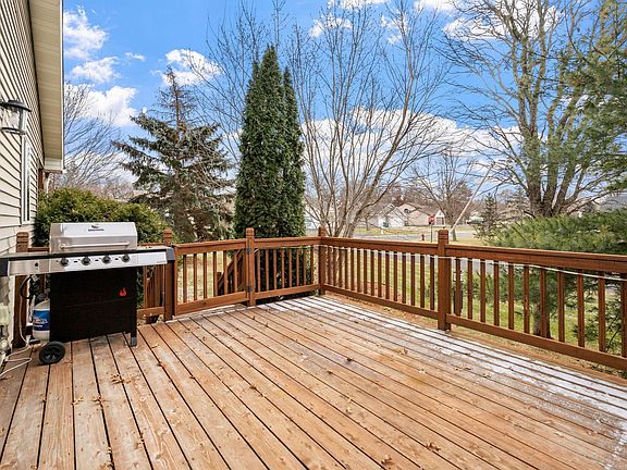 OFFERS RECEIVED, ALL OFFERS DUE 7:00PM SATURDAY 12/2. Beautiful 3 bedroom 2 bath home with an open concept layout on the main level with a gas fireplace and a deck off the dining area. Perfect home for entertaining with a dry bar on the middle level and a walkout patio. Large corner lot with mature trees and fully fenced in backyard with a 12x10 storage shed. So many updates throughout including new cabinet pulls in kitchen/bathrooms, all new door handles, accent walls added in bedrooms and bathrooms, + more (see supplements). Wi-fi controlled irrigation system + garage door openers, 2022 roof, 2021 water softener, all new exterior lights and flood lights. 3 car 29x22 heated/insulated garage with epoxy floors - garage opener was added to the 3rd stall. Close to Sherburne National Wildlife Refuge! Beautiful move-in ready home!