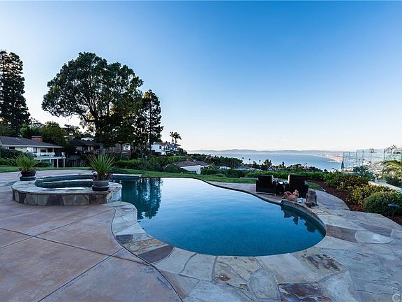 This mostly 1-level cul-de-sac home offers the most jaw-dropping Queen's Necklace view imaginable and it sits on a rare, mostly flat .40 acre lot! The unobstructable 180° view spans from Malibu to Long Beach and includes the most breathtaking white water, coastline, city lights and mountain -views! Wake up in your entry level master bedroom to the sight of breaking waves, the downtown LA skyline and snow-capped San Gabriel mountains, all with your head still resting on your pillow! And the view is just as magnificent from the great room, kitchen, dining room & yard! The yard is an entertainer's DREAM with gorgeous stone patio, built-in BBQ kitchen, an exquisite infinity pool & spa, an indoor/outdoor bar + grassy landscaped yard & an orchard with lots of fruit trees! When you're floating in the infinity-edge pool, it looks like the pool & ocean are connected! The spacious backyard can accommodate over 150 guests. This open & airy home has 4 big bedrooms, an office, a large living room, huge formal dining room, and a gorgeous granite kitchen w/ walk-in pantry, new appliances (SubZero fridge, Wolf range, Bosch dishwasher), and island seating for 10! Upstairs features an awesome 2 bdrm, 2 bath guest suite w/ kitchenette that's perfect for guests, teenagers, or in-laws, & can be accessed privately. Totally remodeled 10 years ago, this home has an attached 3-car garage with wiring for 2 Teslas, 2 A/C units, 2 tankless water heaters. This one of a kind property is sure to sell fast!