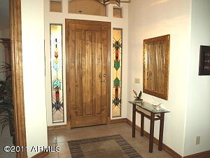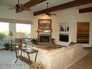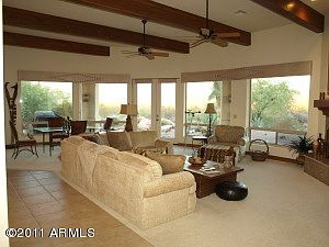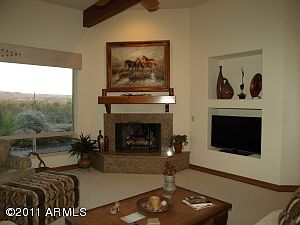 Absolutely incredible Mazatzal mountain and Four Peaks views from this custom home secluded in a private cul-de-sac. Lot borders the 3 million acre Tonto National Forest. Turn key living - all of the designer furniture and accessories are included along with the golf cart. Wonderful 3 bedroom + den and 2 1/2 bath home with all the upgrades: 8ft alder pecan stained interior doors and cabinets, cedar ceiling in the breakfast nook, wood beams in the great room ceiling, tiled countertops and showers in all baths, stained glass front door sidelights, wet bar in the kitchen, and paver patios and driveway. This home is the ultimate in privacy and views. The sunsets will take your breath away. Come and experience the best that Tonto Verde has to offer in this stunning home.