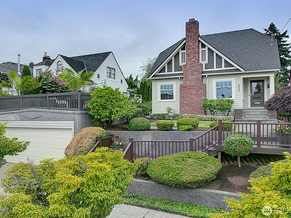 Price reduced! Nestled in the premier pocket of the sought-after Belvidere area, charm and comfort are in abundance in this 1925 craftsman with views of the Sound, city and mountains! Upon entering, you are greeted by a stunning living room (w/fireplace) and dining room, with unpainted period millwork and oak flooring. The well-designed kitchen boasts quartz countertops, stainless appliances, and second oven, and opens to the family room. Upstairs includes 3 additional bedrooms, fully remodeled bath, and washer/dryer. The 800 sq/ft lower level is unfinished and plumbed for bath. This breathtaking property boasts mature landscaping, appr. 400 sq/ft entertainment deck, Anderson windows, updated electrical, gas furnace/H2O and 2-car garage.