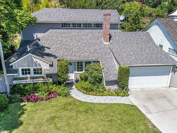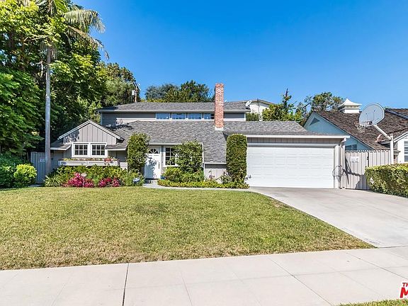 This two-story ranch home has been meticulously maintained and upgraded. The first floor has an open floor plan w/the living room, combination family room/dining room and kitchen all flowing together, making it ideal for large gatherings. The kitchen has granite counters & a spacious breakfast area. There are 2 bedrooms downstairs, one of which is a second master, w/ French doors to the yard. The enormous upstairs master has a large sitting area, vaulted ceilings & a balcony overlooking the very private, wooded yard, complete w/abundant flowers, patio area & bubbling fountain. In addition, there is an upstairs study. The luxurious master bath has double shower heads, marble counters & a spa tub. Hardwood floors in the public rooms, elegant marble fireplace in the living room, security system, & two zone A/C are just a few of the special features. Located on a prime Cheviot Hills street, with top rated public schools, & close to Century City & Beverly Hills, this home offers it all!