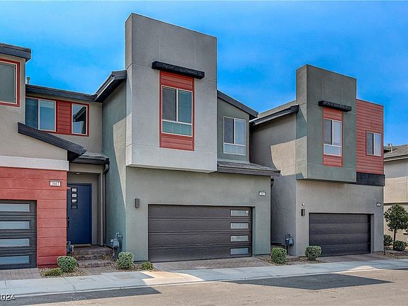 Welcome to modern convenience in Inspirada, a connected community & way of life. This 3-bed, 2.5-bath townhome lives like a SFR, featuring a 2-car garage w/ epoxy finish & an oversized backyard w/ expansive pavers. Inside, a 20ft entryway & 10ft ceilings create a bright, airy feel. Boss security screens downstairs double as solar shades. The kitchen boasts GE® stainless steel appliances, granite countertops, & a pantry, w/ dining & living spaces that flow effortlessly. A geometric stair railing adds a stylish touch. The spacious primary suite features an upgraded walk-in closet, dual sinks, & a large shower. Dedicated laundry room w/ ample storage, 2 additional bedrooms, full bathroom w/ dual sinks. Enjoy the private resident-only pool, BBQ area, dog park, & playground at Capri. Inspirada offers 6 parks w/ pools, dog parks, sports courts, & scenic trails etc. W/ nearby shopping, dining, & easy access to the I-15 Highway, Inspirada is the perfect blend of convenience & recreation.