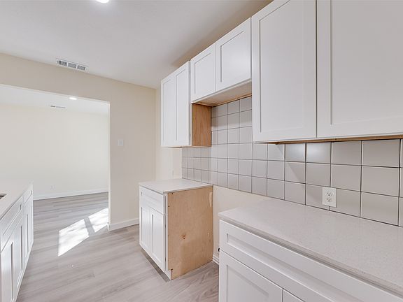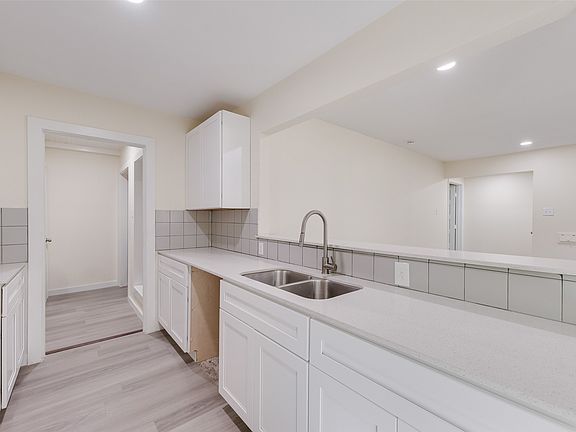 Sleek white cabinetryOpen-concept floor planLarge backyardRecessed lightingQuarter-acre lotNatural lightSubway tile backsplash
