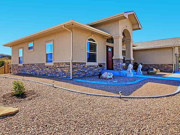 Ranch style split bedroom design with views from every room. Large covered patio SE facing. 3 car garage epoxy floor. Extra storage .3acre lot xerascaped entirely. Backyard borders greenbelt. Office/4th bedroom. Living room south-facing with large view windows and electric fireplace. Dining room and kitchen share large view windows south facing. Gorgeous skyline kitchen cabinets and white counter tops. Dual convection ovens. All appliances Kenmore Elite. Walk in pantry. Large master bedroom with outdoor access. Walk-in shower with natural stone floor. clawfoot tub. Walk-in closet. Mohawk engineered hardwood floors throughout excepting kitchen and bathrooms which are tile.