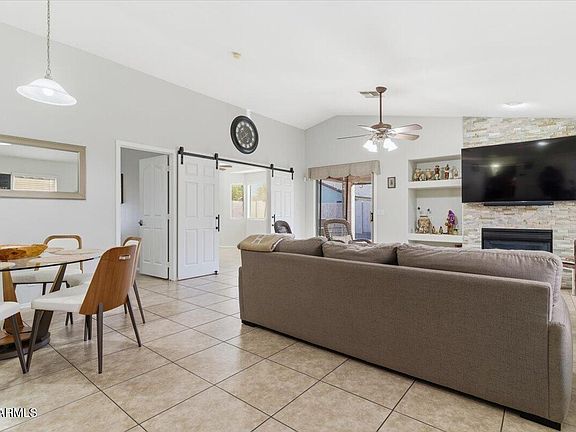 Stylish, move-in ready living awaits in this updated Augusta Ranch gem! The bright, open Great Room floorplan features vaulted ceilings, 20'' tile throughout, and a sleek gas fireplace centerpiece. The kitchen dazzles with refinished white cabinetry, stainless gas appliances, and modern fixtures. Both bathrooms are beautifully refreshed, while barn doors, sunscreens, and upgraded lighting add designer flair. Enjoy the quiet interior lot in this golf course community located close to major highways!