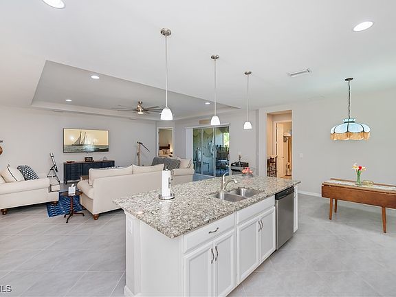 Welcome to this light and bright 4-bedroom 3 full bath home nestled in one of SW Cape Coral's most popular neighborhoods. With 2368 sq. ft. of living space, this home offers the perfect blend of comfort, style, and function. From the moment you step inside you'll be greeted by soaring ceilings 8-foot doors, and a spacious open-concept layout that feels both elegant and inviting. The kitchen with elegant granite countertops, custom cabinetry, and top-of-the-line appliances opens right into the great room, making it easy to stay connected while cooking entertaining, or simply enjoying family time. High-end finishes throughout add a touch of quality you can see and feel. The 3-car garage with split A/C is ideal for hobbies, storage or keeping your car cool year-round. A generator with electric start stays with the home, giving you peace of mind when you most need it. Some of the upgraded features of the home are ALL ASSESSMENTS ARE IN AND PAID IN FULL, New gutters installed, new roof in 2023, Smart home system. NO Flooding from any of the hurricanes the home is high and dry, and the flood insurance is transferable to new owners! Located close to shopping, dining, and all the best of Cape Coral living, this home offers everything you've been looking for-space, style, and a fantastic location.